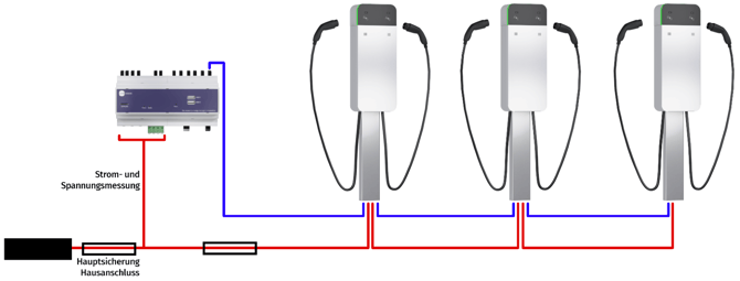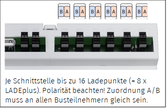 Diese Informationen gelten nur, wenn mehr als ein LADEplus-Gerät an dieselbe Versorgungs- bzw. Datenleitung angeschlossen wird.