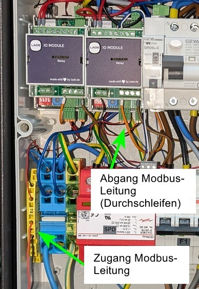 RS485-Stecker am LADEgenius Klemme am Feinschutz