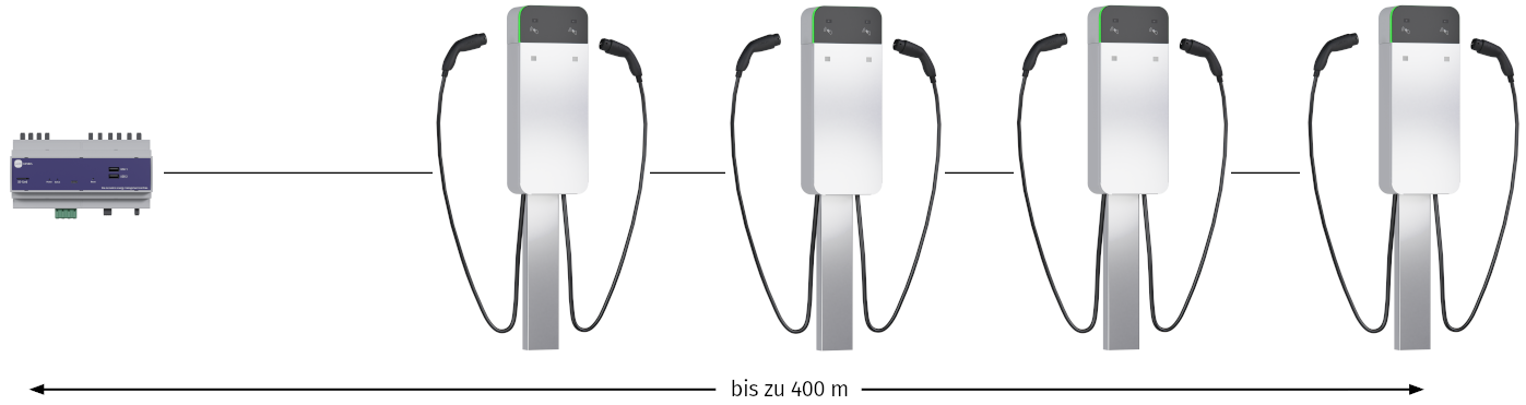 LADEplus kann bis zu 400 Meter von LADEgenius entfernt installiert werden.